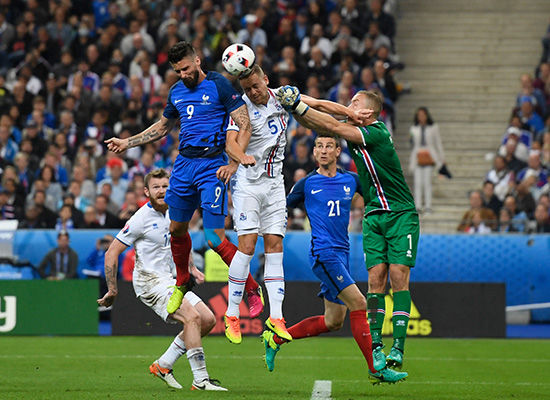 冰岛队的打法简单粗暴,他们是目前本届欧洲杯空中对抗能力最强的球队。遇到这样一个对手,吉鲁的做 法同样很简单:以暴制暴!全场比赛,吉鲁不仅在高空球对抗上不落下风,还完全发挥了进攻支点的作用。他2次射门换来2个进球并且有1次助攻,此外他赢下了 4次空中对抗。出场不到1小时,吉鲁的答卷已足够完美。